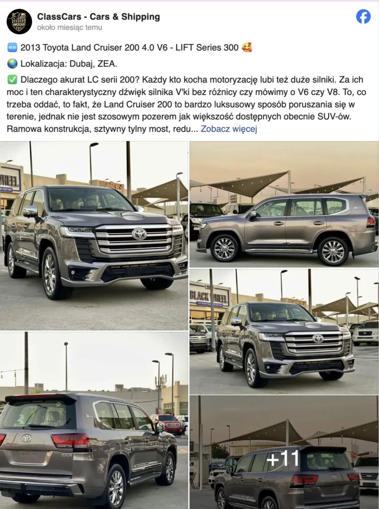 Szukasz samochodu prosto z Dubaju? Dołącz do naszej unikalnej społeczności na Facebooku, gdzie jako jedyni na miejscu w Dubaju, oferujemy bezpośredni dostęp do najlepszych ofert z tego rynku.