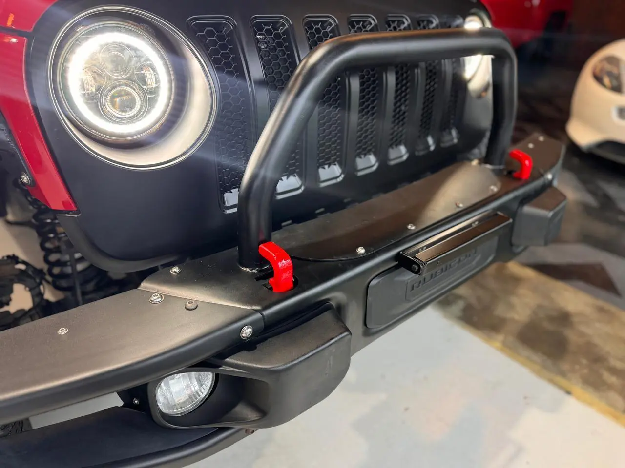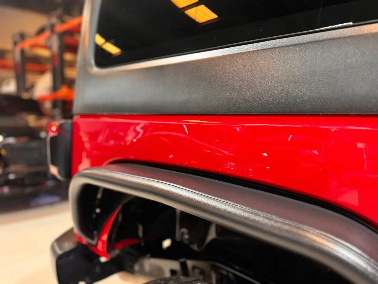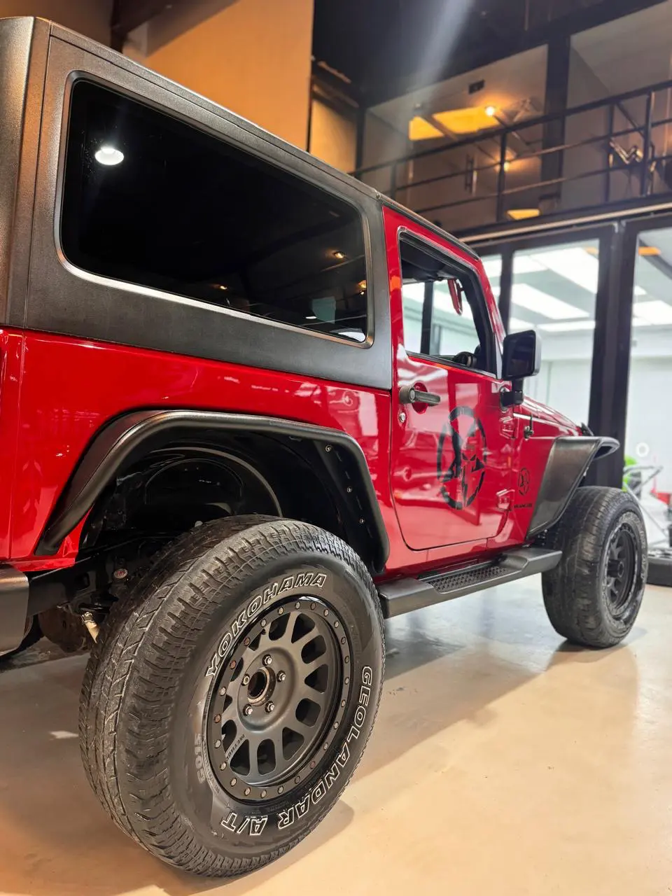Prezentowany egzemplarz został wyposażony w szereg modyfikacji, które czynią go jeszcze bardziej wszechstronnym w terenie. Auto otrzymało opony Yokohama GEOLANDER A/T o średnicy 33 cali zamontowane na 17-calowych felgach aluminiowych marki METHOD, które doskonale podkreślają jego pancerny styl. Zawieszenie zostało unowocześnione za pomocą komponentów FOX – model 2.0 – co pozwoliło uzyskać 2-calowy lift zwiększający prześwit i poprawiający zdolności terenowe. Dodatkowe stalowe zderzaki marki Rubicon, przedni z „barem” i halogenami, wzmacniają ochronę pojazdu i nadają mu jeszcze bardziej dynamicznego wyglądu. Reflektory LED oraz tylne lampy inspirowane modelem JL 2024 zapewniają nowoczesny design i funkcjonalność.