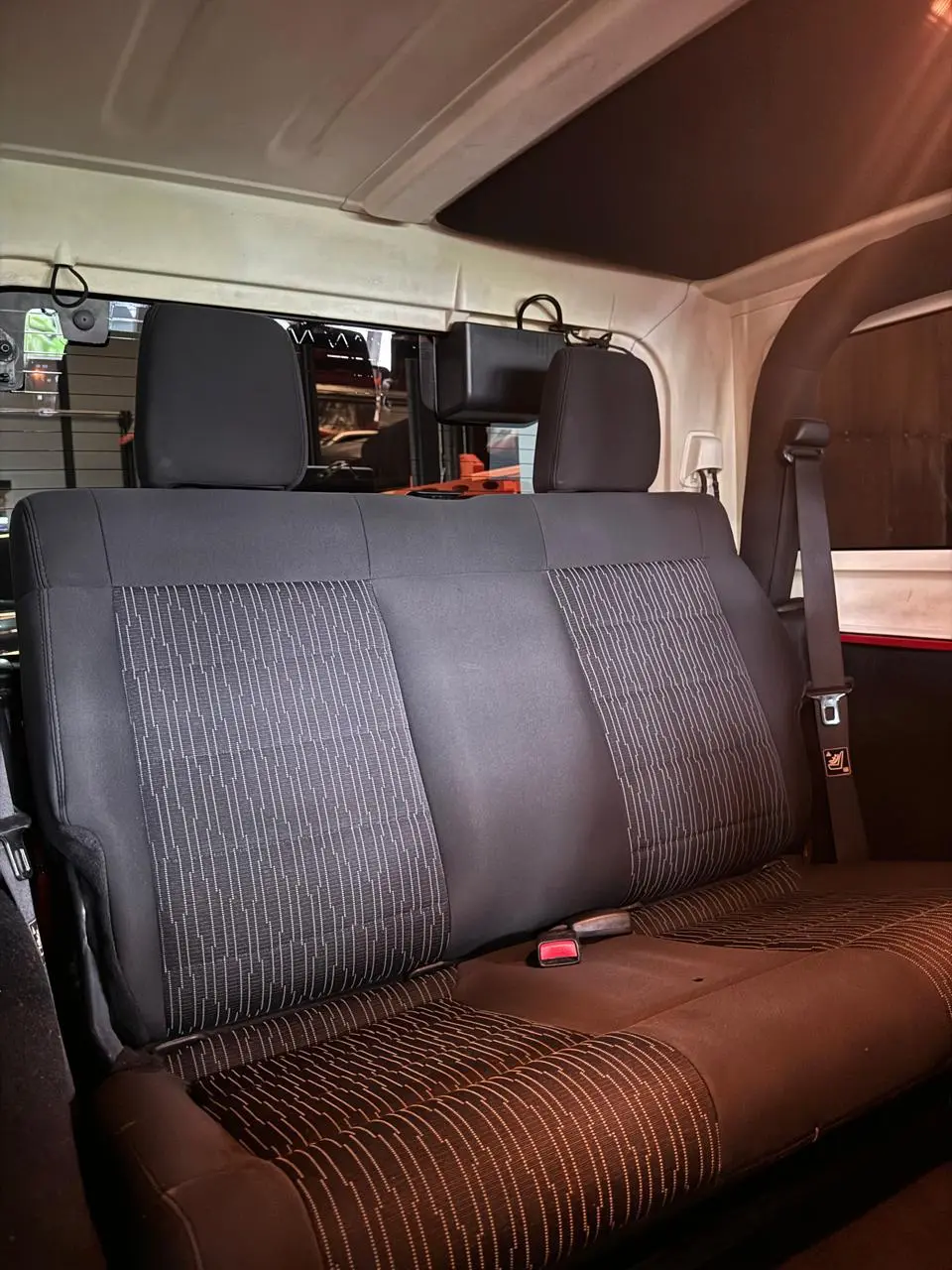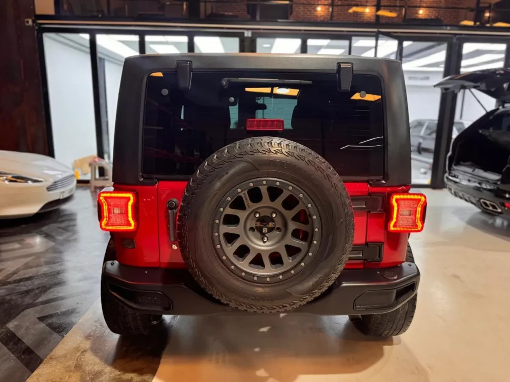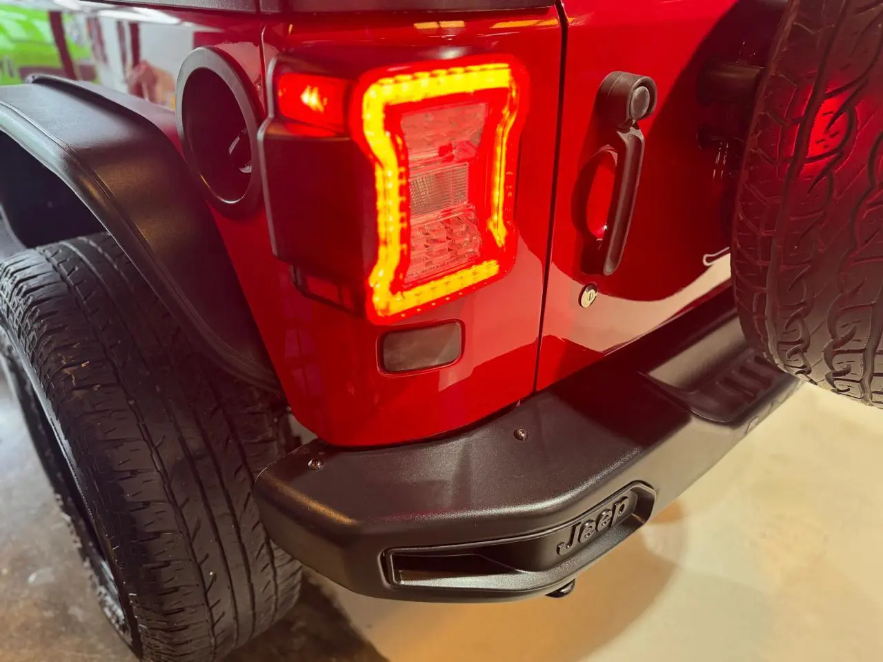 Prezentowany egzemplarz został wyposażony w szereg modyfikacji, które czynią go jeszcze bardziej wszechstronnym w terenie. Auto otrzymało opony Yokohama GEOLANDER A/T o średnicy 33 cali zamontowane na 17-calowych felgach aluminiowych marki METHOD, które doskonale podkreślają jego pancerny styl. Zawieszenie zostało unowocześnione za pomocą komponentów FOX – model 2.0 – co pozwoliło uzyskać 2-calowy lift zwiększający prześwit i poprawiający zdolności terenowe. Dodatkowe stalowe zderzaki marki Rubicon, przedni z „barem” i halogenami, wzmacniają ochronę pojazdu i nadają mu jeszcze bardziej dynamicznego wyglądu. Reflektory LED oraz tylne lampy inspirowane modelem JL 2024 zapewniają nowoczesny design i funkcjonalność.