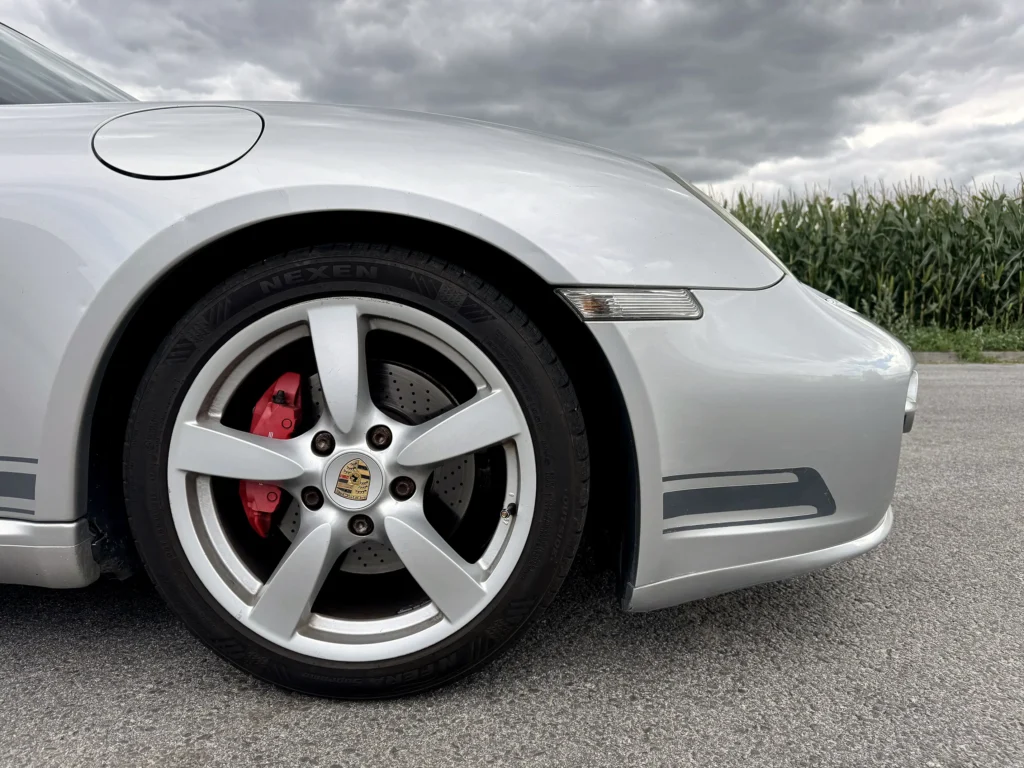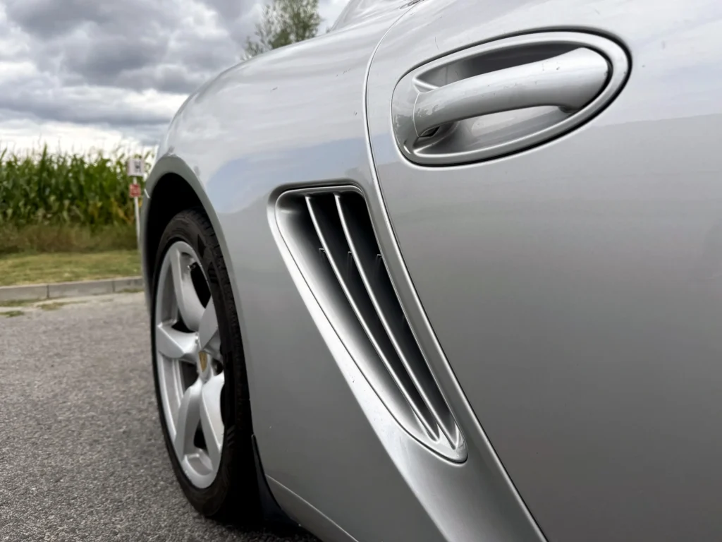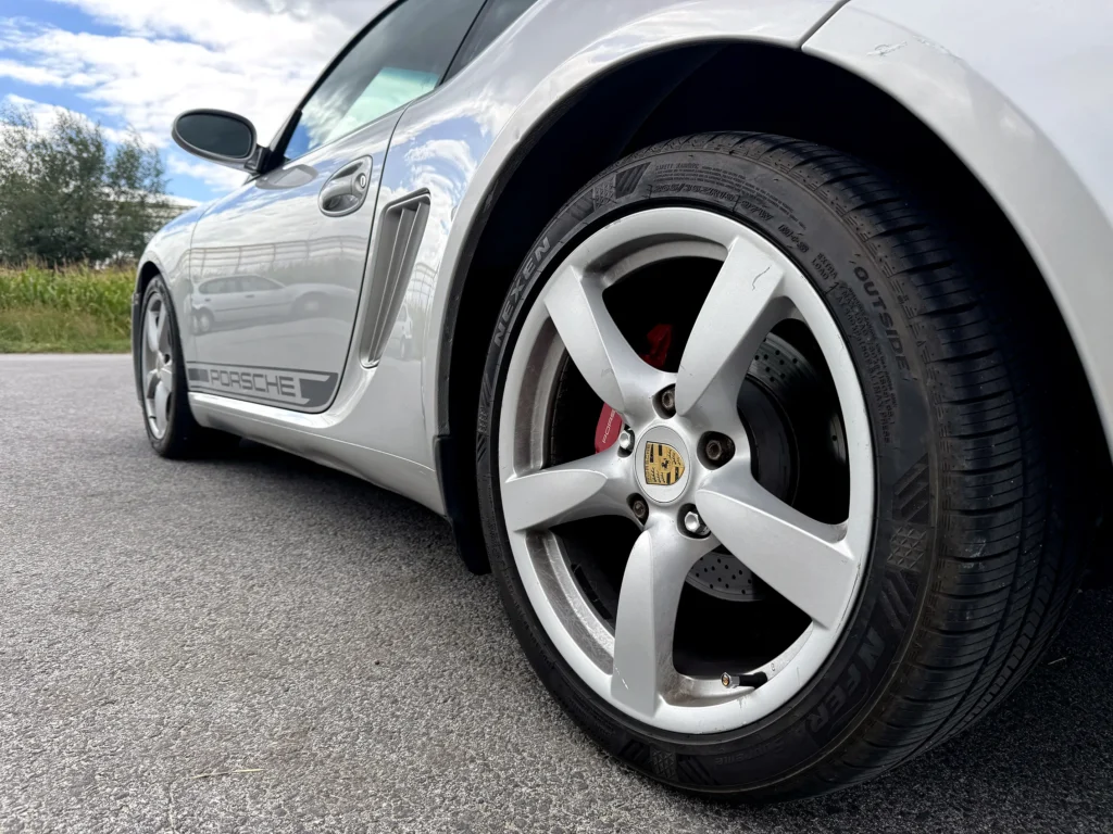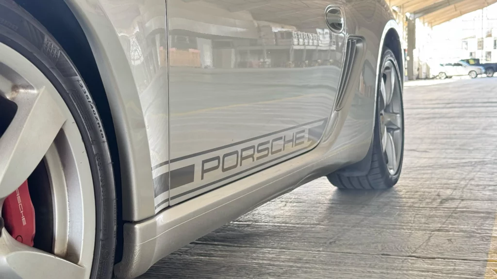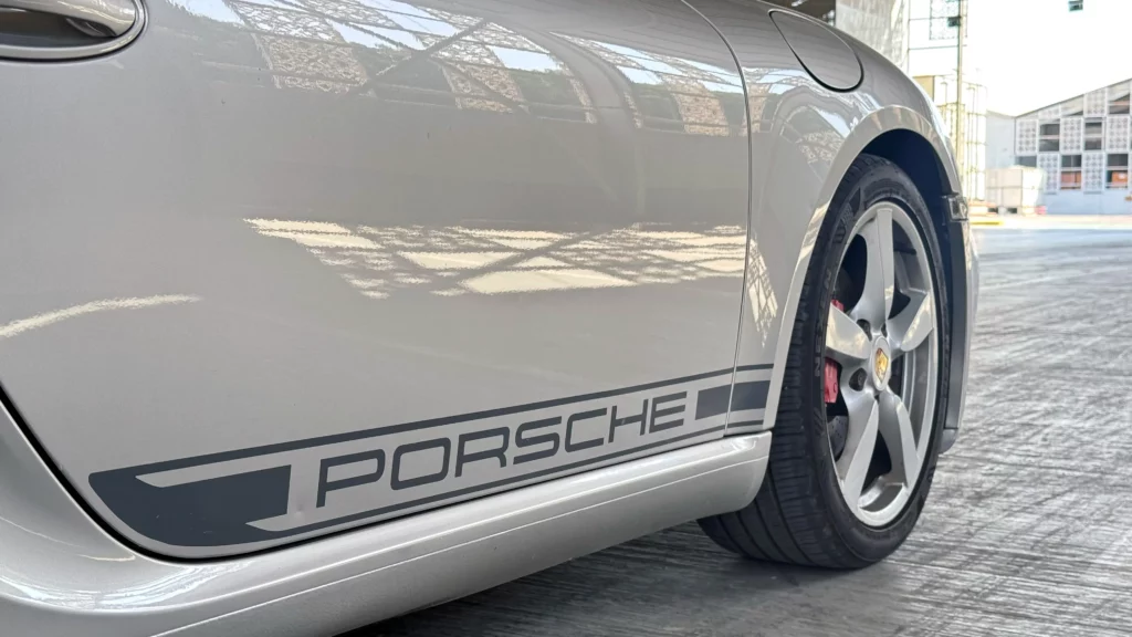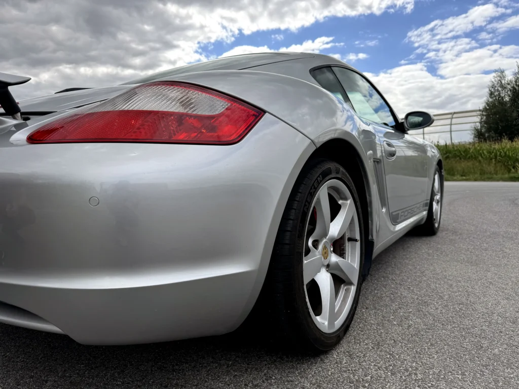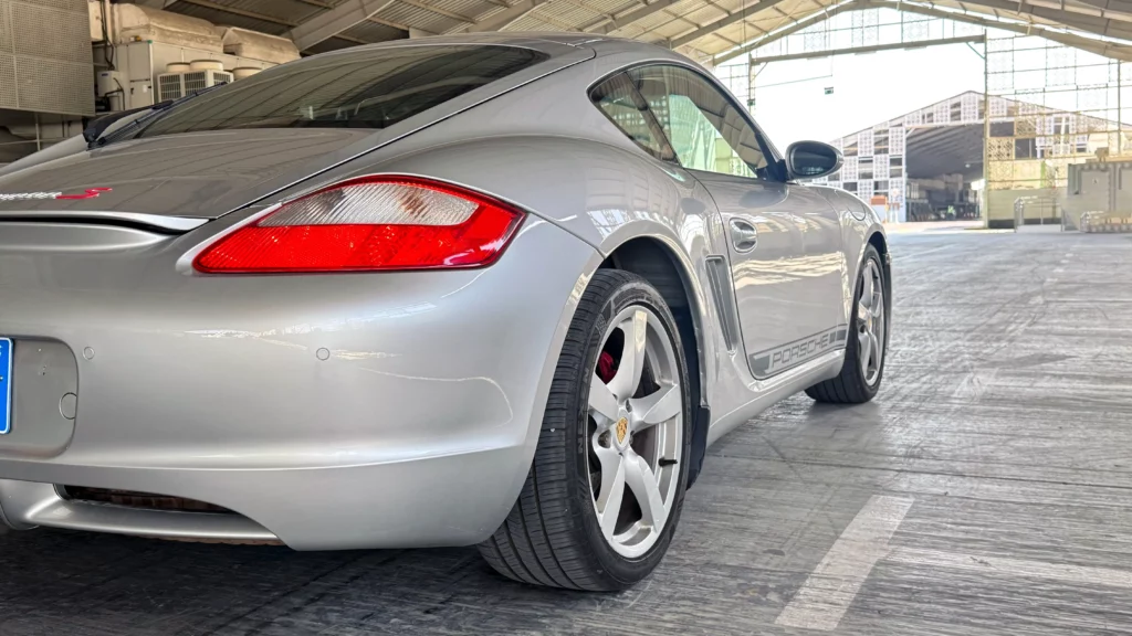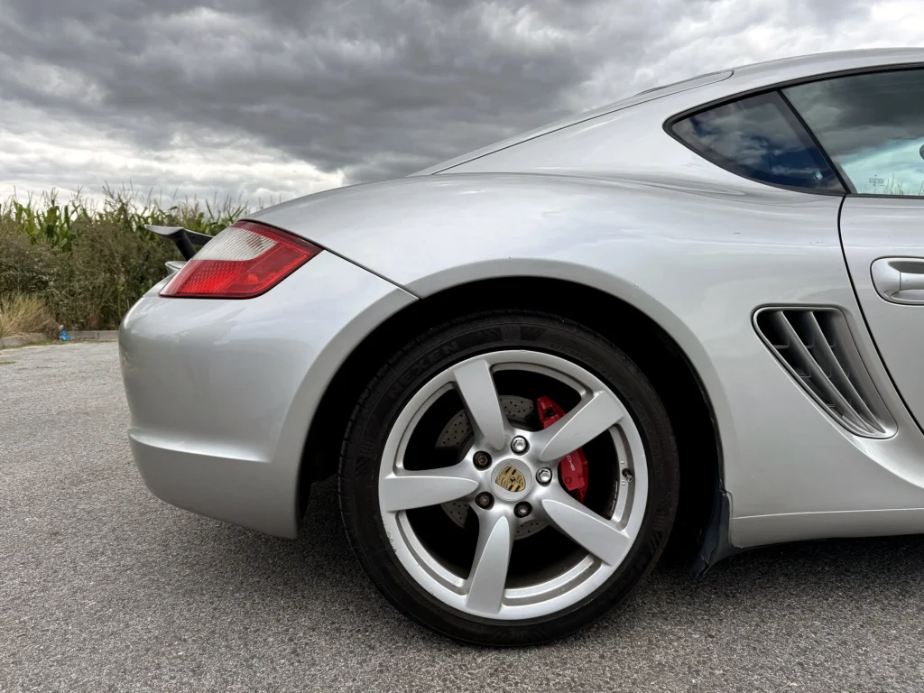 Porsche Cayman S 2007 wyróżnia się ponadczasowym stylem i sportowym charakterem. Charakterystyczne linie nadwozia, agresywnie zaprojektowany profil oraz samochód bez śladów napraw blacharsko-lakierniczych sprawiają, że auto prezentuje się zjawiskowo. Wszystkie szyby, poza przednią (typowe dla aut z Emiratów), są oryginalne, a nowe opony NEXEN zapewniają doskonałą przyczepność i komfort jazdy.