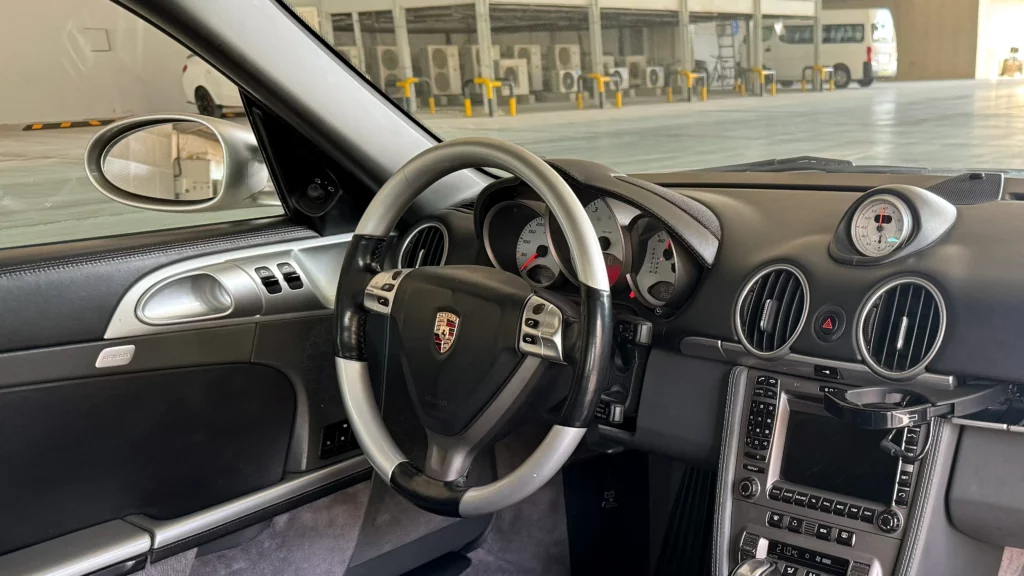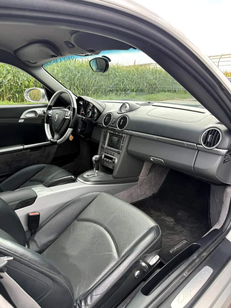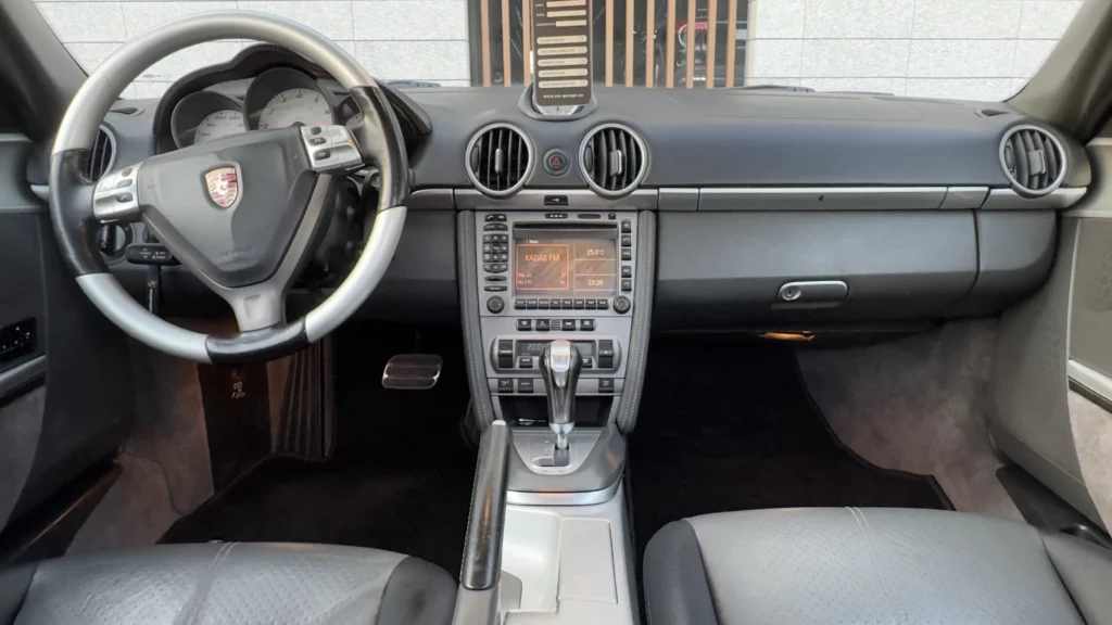 Wnętrze Caymana S to połączenie luksusu i praktyczności. Siedzenia są w idealnym stanie, z elektryką i pamięcią działającą bez zarzutu. Konsola centralna, panel przedni oraz deska rozdzielcza zachwycają estetyką – wszystkie elementy wyglądają jak nowe. Wzmacniacz Porsche ASK oraz oryginalny system nagłośnienia zapewniają doskonałą jakość dźwięku, a funkcjonalna elektronika umożliwia komfortowe użytkowanie zarówno na co dzień, jak i podczas długich podróży.